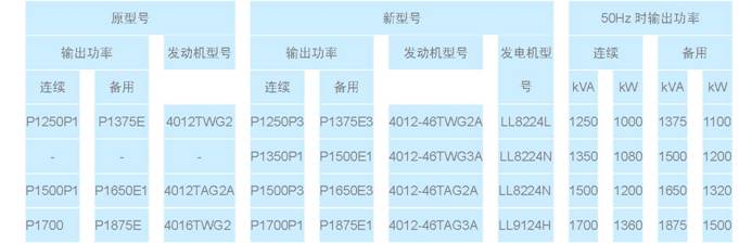 威爾信 1250kVA~1875kVA發(fā)電機組(原來(lái)由 Perkins4012和 4016系列發(fā)動(dòng)機驅動(dòng))有重大設計改變,產(chǎn)品類(lèi)型增多,性能進(jìn)一步改善。具體變更見(jiàn)下表: