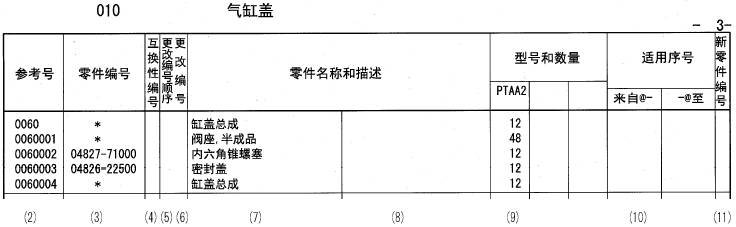 (a) 形式:將適用于該零部件目錄的機種名稱(chēng)、規格、送貨地等,每變化一次就表示在標題欄里。