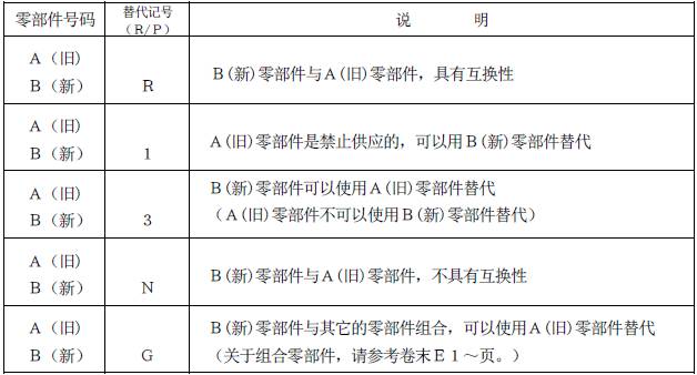 用下述記號,表示舊零部件的替代性。