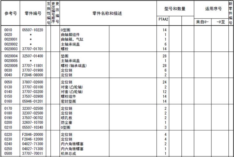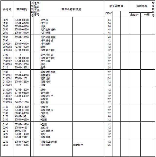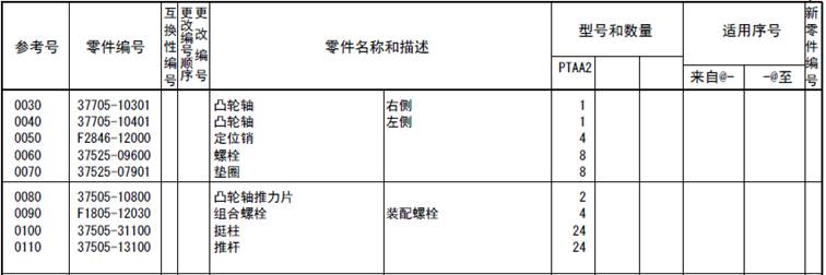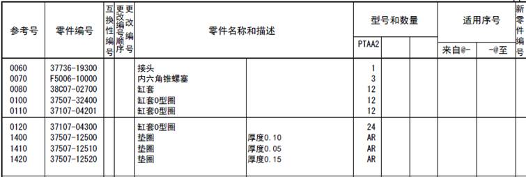 該零部件,在FROM 欄里表示從幾號開(kāi)始能夠適用、在UPTO 欄里表示到幾號為止能夠適用。