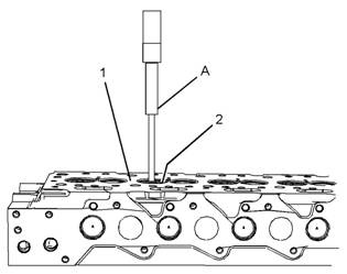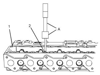 檢查氣門(mén)導管(2)的精加工直徑。有關(guān)更多資料,請參閱《技術(shù)規格》,“缸蓋-氣門(mén)”。
