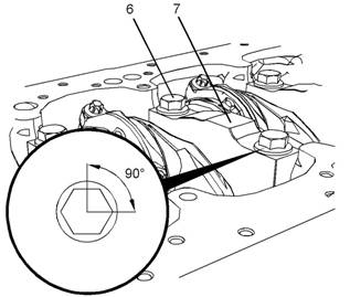 11使用清潔的發(fā)動(dòng)機機油潤滑螺栓(6)的螺紋。使用清潔的發(fā)動(dòng)機機油潤滑螺栓(6)頭的底面。