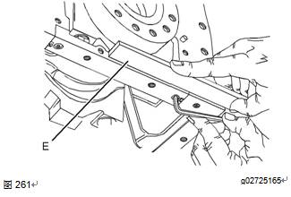 c.使用工具(E),對齊橋接件(10)的后表面與缸體的后表面。