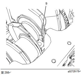 8使用清潔的發(fā)動(dòng)機機油潤滑止推墊圈(9)。將止推墊圈(9)安裝到缸體的6號主軸瓦中。