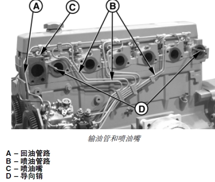 1. 將噴油嘴(C) 和噴油管(B) 作為一個(gè)總成安裝。參見(jiàn)相應步驟: