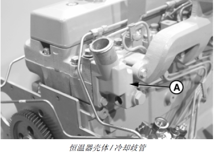 注意: 一些John Deere約翰迪爾強鹿柴油發(fā)動(dòng)機的恒溫器/ 冷卻歧管與缸蓋是一體的。