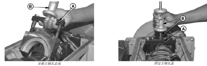 注意: 還可以通過(guò)均勻擰緊兩個(gè)主軸瓦帶帽螺釘來(lái)固定主軸瓦蓋。