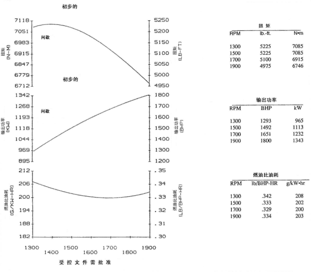 所有的數據是基于發(fā)動(dòng)機帶燃油泵、水泵、機油泵、空濾器和消聲器時(shí)獲得的,而不包括交流發(fā)電機、空壓機、風(fēng)扇、其它選用設備和被驅動(dòng)的部件。
