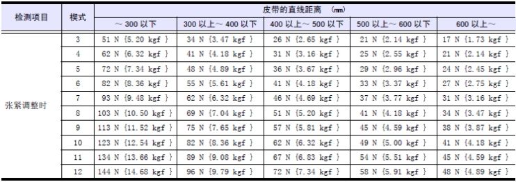 (2) 檢測皮帶的張緊力( 下陷量)。