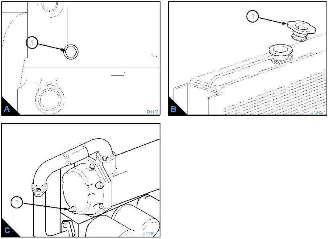 4 從缸體的側面拆下排放螺塞(A1)以便排空珀金斯發(fā)動(dòng)機。 確保排放孔未被堵塞。