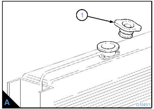4 安裝散熱器蓋 (A1) 并空載運行珀金斯發(fā)動(dòng)機直到節溫器打開(kāi)。