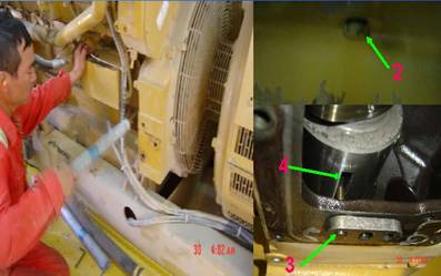 第一缸排氣沖程式上死點(diǎn) 并按柴油機正常轉向再將飛輪1轉動(dòng)360°將定正時(shí)螺栓2擰入氣輪,凸輪固定銷(xiāo)孔3與凸輪軸銷(xiāo)孔4已對不上證明是第一缸排氣沖程式上死點(diǎn)??ㄌ乇死詹裼桶l(fā)動(dòng)機|卡特彼勒柴油發(fā)動(dòng)機氣門(mén)間隙調節技術(shù)|卡特彼勒柴油發(fā)動(dòng)機氣門(mén)間隙調節資料|卡特彼勒柴油發(fā)動(dòng)機氣門(mén)間隙調節維修服務(wù)商