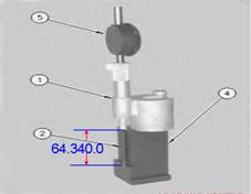 噴油器定時(shí)高度范圍:64.34mm。將千分表和定時(shí)固定器放入6V3177定位規4上,移動(dòng)千分表直到指針為零,然后固定表。