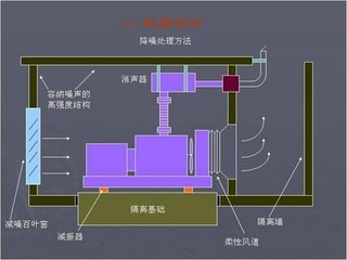 對于柴油發(fā)電機組的機械噪聲、燃燒噪聲等通過(guò)輻射的方式傳播的噪聲,通過(guò)機房進(jìn)行隔聲處理,機房既要密封、隔聲效果好,又要保證機房?jì)瓤諝獾捻槙沉魍?。一般采?span>240及以上的磚墻、隔聲門(mén)、隔聲窗、消聲器等治理措施。