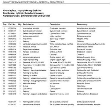BUKH 柴油機 DV8 和 DV10 L -零備配件清單。 |