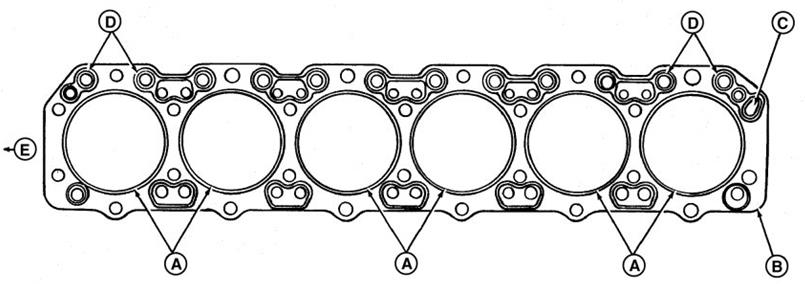5.觀(guān)察拆下的JOHN DEERE六缸發(fā)動(dòng)機缸蓋墊片的表面。