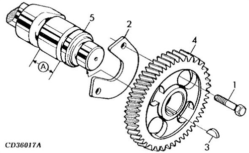 3.前后移動(dòng)約翰迪爾John Deere柴油機凸輪軸齒輪并觀(guān)察端隙讀數。將讀數與下面給出的規格進(jìn)行比較。