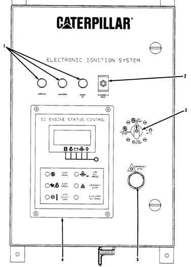 1)指示燈(2)診斷重新設置紐(3)卡特CAT發(fā)動(dòng)機控制開(kāi)關(guān)(4)狀態(tài)控制模塊(5)緊急停止按紐