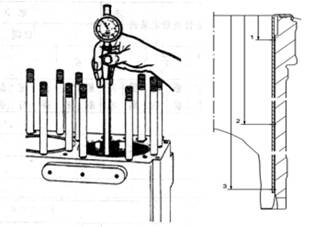 1.測量?jì)葟?。檢查進(jìn)、排氣閥導管有無(wú)腐蝕現象發(fā)生,用內徑表測量其內徑并做記錄。結合氣閥閥桿外徑的測量尺寸,計算兩者之間的間隙。
