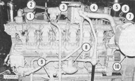 1)化油器和燃氣壓力調節器間的平衡管路(2)化油器(3)通向化油器的燃氣引入管路(4)后冷卻機(5)排氣旁通閥(6)排氣肘管(7)渦輪增壓器(8)燃氣壓力調節器(9)燃氣關(guān)閉閥(10)空氣過(guò)濾器