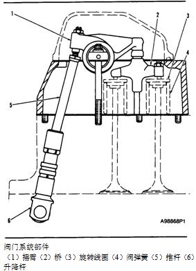 1)搖臂(2)橋(3)旋轉線(xiàn)圈(4)閥彈簧(5)推桿(6)升降桿