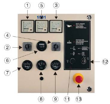控制開(kāi)關(guān)也在儀表下面,但有多至16盞故障指示燈。在著(zhù)車(chē)或開(kāi)動(dòng)發(fā)電機組之前,操作人員須非常熟悉控制屏上的儀器和控制組件,當機器運轉時(shí),操作員須不時(shí)監察注視儀表,這樣做可以發(fā)現異常讀數從而防止問(wèn)題出現。