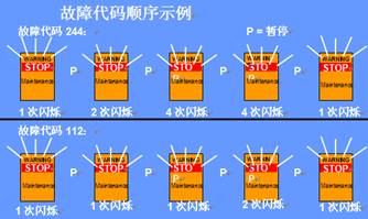 Through diagnosis into fault code flashing mode switch or the accelerator pedal. To enter the flashing mode, fault code key switch must be in the ON (ON) position and engine stop. Use diagnostic switch into the model, after the diagnostic switch to ON position, the ECM will automatically blink the first failure code. Diagnosis of increase/decrease will forward or backward to adjust the current fault code. To use the accelerator pedal into the flashing mode, fault code must be on the and release the accelerator pedal, the throttle opening for three times from 0 to 100%. Once in the diagnostic mode, cycle on the and release the accelerator pedal can be forward to the current fault code sequence. Below described by flashing way down light indication of error code type.