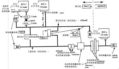 The SAE J1939-12 (the physical working draft for part 2 of ISO 11783, May 1997). Work under a speed of 250 KB/SEC, a linear bus with four core stranded wire.