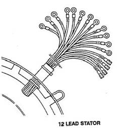 12-導線(xiàn)發(fā)電機可以連接成提供單相電源。這種接法被稱(chēng)為“狗腿”。用這種接法,120與240伏的單相電路都可以得到。