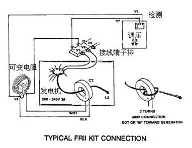 FR調壓器檢測電壓平均值。在發(fā)電機端子V7-V8上監測標稱(chēng)值為190V-277V的單相電壓傳感信號。