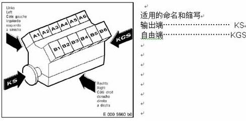 發(fā)動(dòng)機排的命名總是按面向輸出端來(lái)觀(guān)察的。左排缸標識為A 排,右排缸標識為B 排(按照DIN ISO 1204 標準)。每排氣缸由輸出端起,從1 開(kāi)始連續編號。