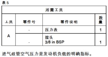 E將步驟4 d的結果與下述適當數值相比較。流過(guò)發(fā)動(dòng)機空氣濾清器的空氣不得超過(guò)以下量:最大阻力3.71 kPa (149 in H:O2)