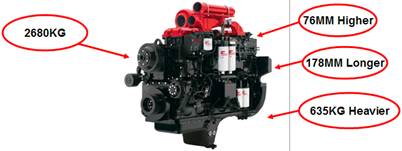 直列6缸結構跟現在的康明斯6缸機相比提供了更高的動(dòng)力輸出。