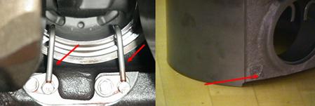 康明斯Cummins QSK23發(fā)動(dòng)機每缸兩個(gè)活塞冷卻噴嘴為冷卻活塞頭部及潤滑活塞銷(xiāo)提供充足的機油。要保證正確的活塞冷卻,活塞必須要正確安裝。安裝時(shí),活塞標有 EX 的一側朝向發(fā)動(dòng)機右側/排氣側。