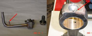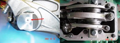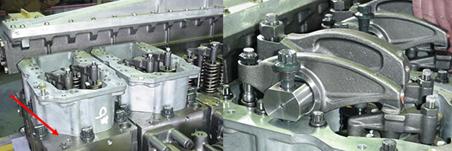 要保證康明斯Cummins QSK23發(fā)動(dòng)機搖臂軸的正常潤滑, 搖臂軸有鉚釘的一側必須朝向發(fā)動(dòng)機前端并且螺栓孔大的一 面朝下。