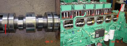 康明斯Cummins QSK23發(fā)動(dòng)機具有 105 mm 軸頸的凸輪軸高位安裝在氣缸體上。這種安裝位置使得推桿行程最短。