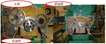 康明斯Cummins QSK23發(fā)動(dòng)機機油泵和水泵裝載發(fā)動(dòng)機的右側由曲軸前端通過(guò)一個(gè)惰齒輪驅動(dòng)。