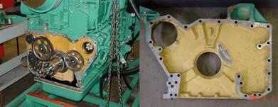 康明斯Cummins QSK23發(fā)動(dòng)機前齒輪室蓋與缸體之間用密封膠密封。沒(méi)有密封墊。