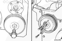 拆下附件驅動(dòng)皮帶輪。 參考步驟 009-004。拆下充電機驅動(dòng)皮帶輪。 參考步驟009-010,