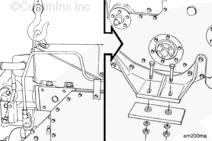提升設備的設計必須可安全地支持發(fā)動(dòng)機前支架已拆下的發(fā)動(dòng)機。否則會(huì )導致設備損壞或人身傷害。
