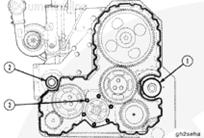 將新密封圈安裝在附件驅動(dòng)安裝 (1) 和水泵安裝 (2) 位置。將 6 個(gè)新螺栓 O 形圈安裝在曲軸油封安裝螺栓位置 (3)。