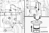 注: 安裝齒輪室殼體時(shí)當心 不要損壞油底殼密封墊。