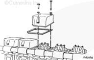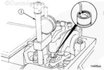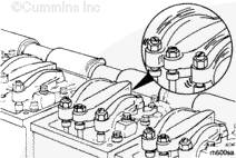 斷開(kāi)蓄電池電纜。參考步驟 013-009。用蒸氣清洗發(fā)動(dòng)機,以防在拆下氣門(mén)罩后,有污物進(jìn)入發(fā)動(dòng)機。參考步驟 000-009。拆下康明斯搖臂室蓋。參考步驟 003-011。