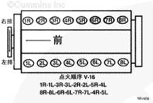 注: 并非所有的康明斯K50柴油發(fā)動(dòng)機都有相同的點(diǎn)火順序。發(fā)動(dòng)機的康明斯搖臂室蓋上有貼紙,且發(fā)動(dòng)機銘牌印有”修訂的點(diǎn)火順序”。
