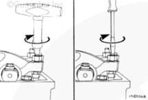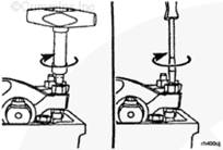 要使用盤(pán)車(chē)裝置,拆卸固定夾并朝著(zhù)飛輪方向推動(dòng)此裝置軸。必須逆時(shí)針轉動(dòng)盤(pán)車(chē)裝置,以按正常旋轉方向轉動(dòng)飛輪和曲軸。