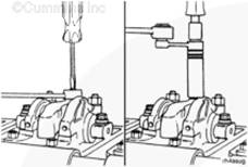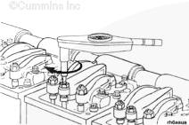 使用度盤(pán)式扭矩扳手擰緊康明斯噴油器搖臂的調節螺釘。如果在調節時(shí)引起調節螺釘發(fā)出嘎嘎聲,則需要維修調節螺釘和搖臂。