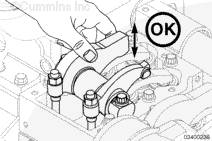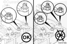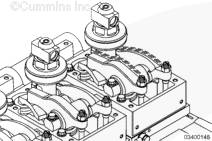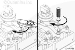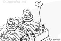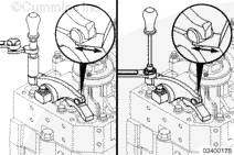確保零件已對準,并且擰緊調整螺釘,將機油擠出氣門(mén)和康明斯噴油器機構。