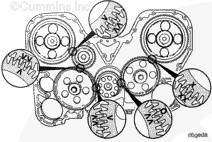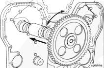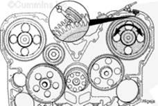 三個(gè)惰輪、兩個(gè)凸輪軸齒輪和曲軸齒輪都帶有裝配時(shí)用于對正的標記。未正確對準會(huì )造成發(fā)動(dòng)機嚴重損壞。