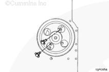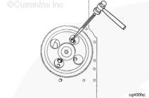 如有必要,轉動(dòng)凸輪軸以便凸輪軸上的孔能夠接近止推板上的螺紋孔。安裝兩個(gè)螺栓和鎖定板。扭矩值:  45  n.m  [33 ft-lb]