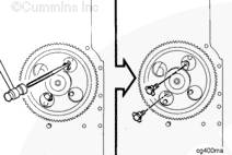 檢查噴油正時(shí)。如果需要,拆下凸輪軸齒輪并改動(dòng)鍵子。參考第 6 節中的步驟 006-025。
